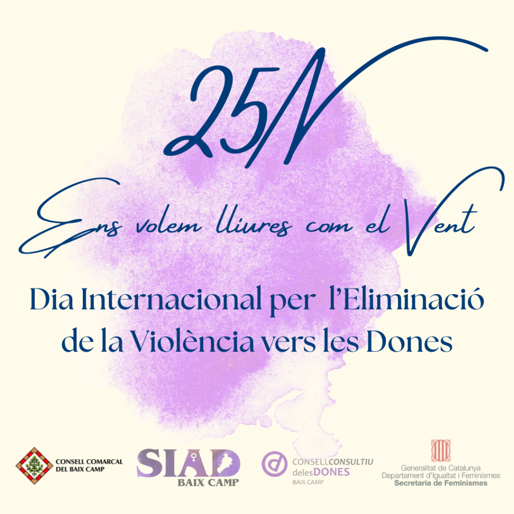 Amb motiu del Dia Internacional per a l’Eliminació de la Violència envers les Dones, el Consell Comarcal del Baix Camp se suma a la commemoració del 25 de novembre sota el lema comarcal “Ens volem lliures com el vent”, posant el focus enguany en les violències masclistes digitals.