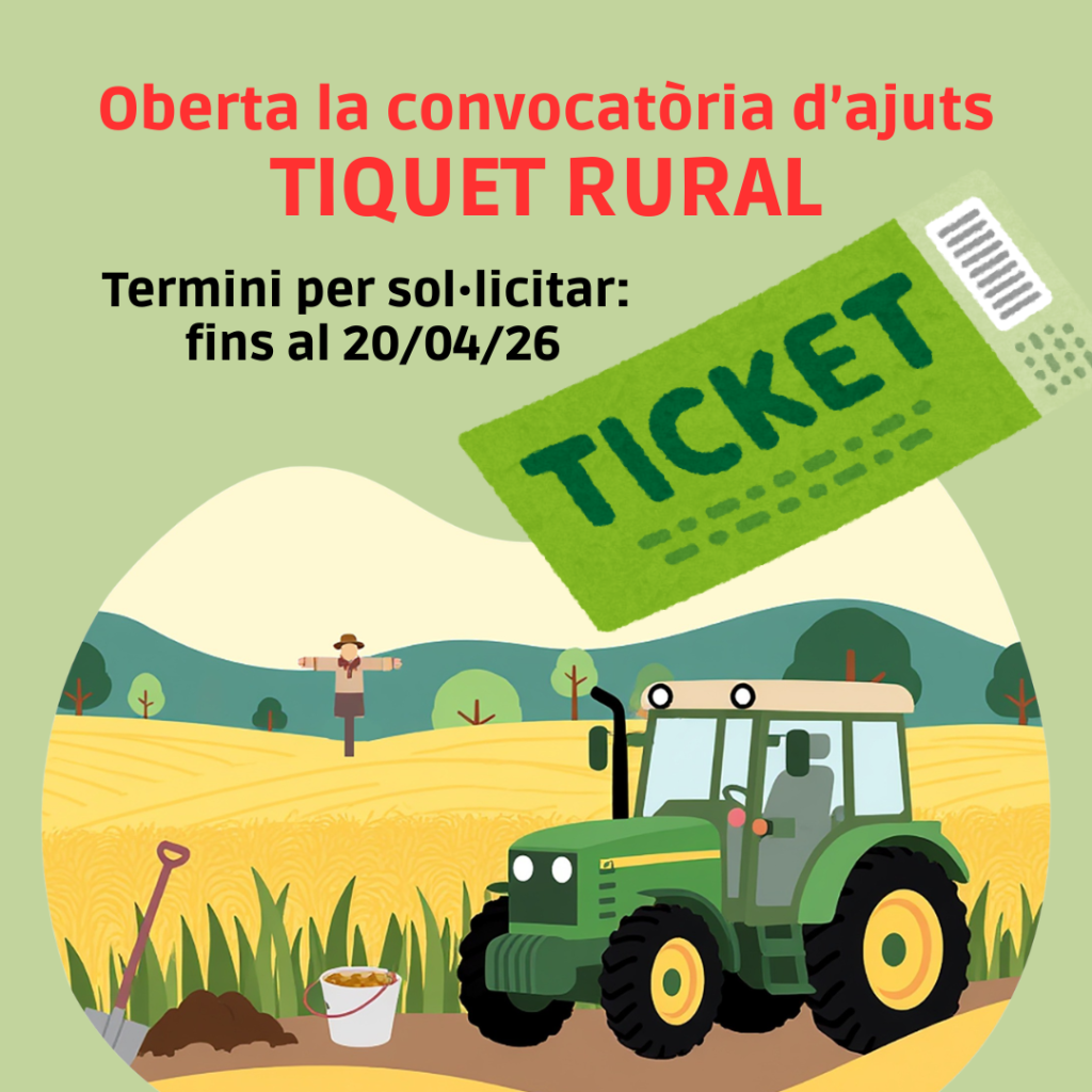 El Departament d’Agricultura, Ramaderia, Pesca i Alimentació ha publicat la Resolució ARP/769/2026, de 9 de març, que obre oficialment la convocatòria dels ajuts destinats a la creació i consolidació d’activitats econòmiques en zones rurals a través del Tiquet Rural, en el marc del Pla Estratègic de la PAC 2023-2027.